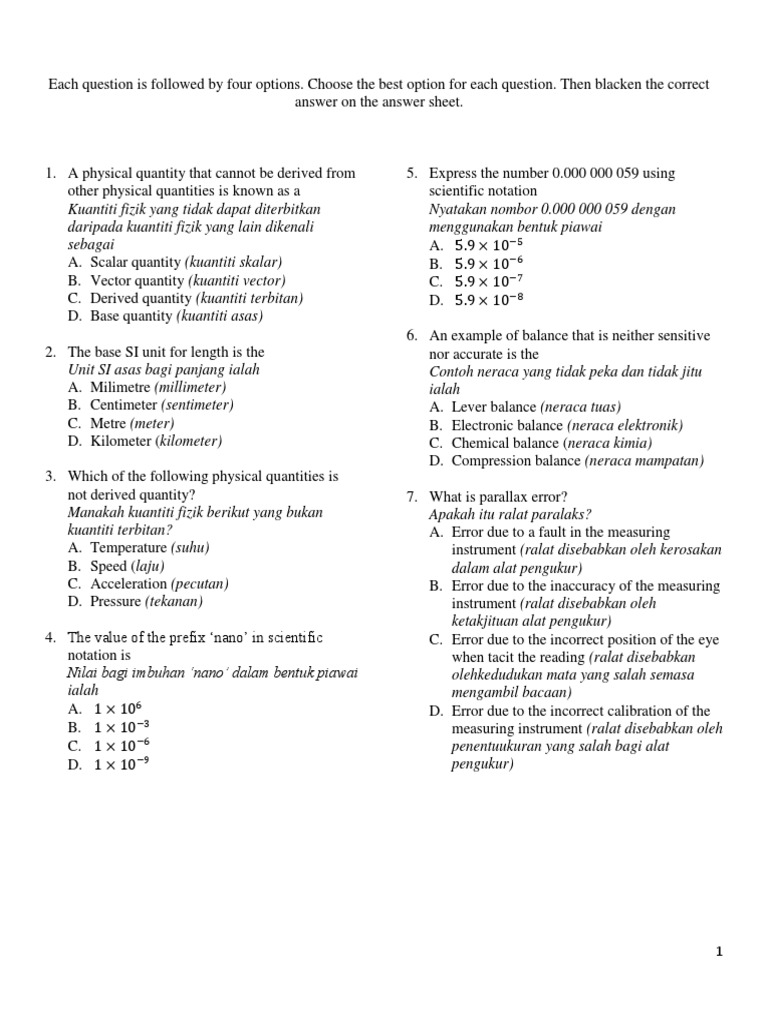 Soalan Ujian Fizik Tingkatan 4 Dwibahasa Physics Form 4 Monthly Test Question Paper Pdf